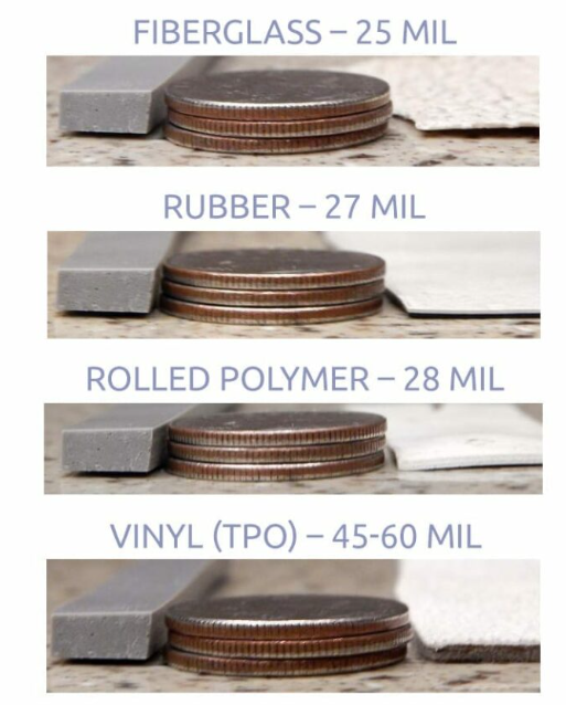 The photo on the right shows how FlexArmor compares to other RV roof materials.
