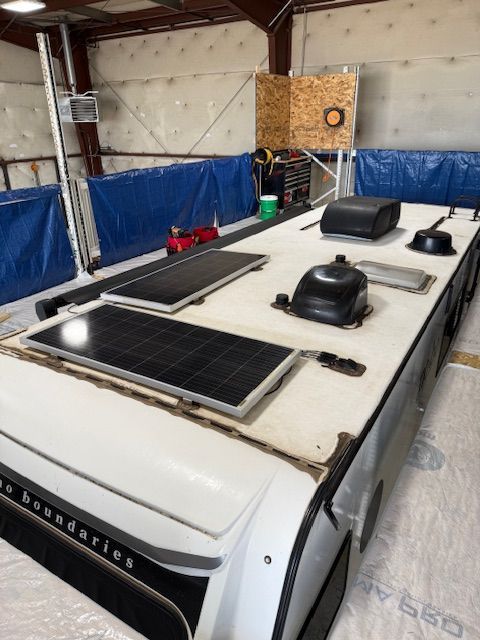 Experience a seamless roofing solution in just 3 days! We will strip all the old caulk from the roof, and remove any roof-top components like the A/C and satellite systems, then thoroughly clean the roof. Our trained applicators will expertly install your new roof in a controlled indoor environment, ensuring quality and efficiency. Get ready to hit the road again, worry-free and confident in your roof!
